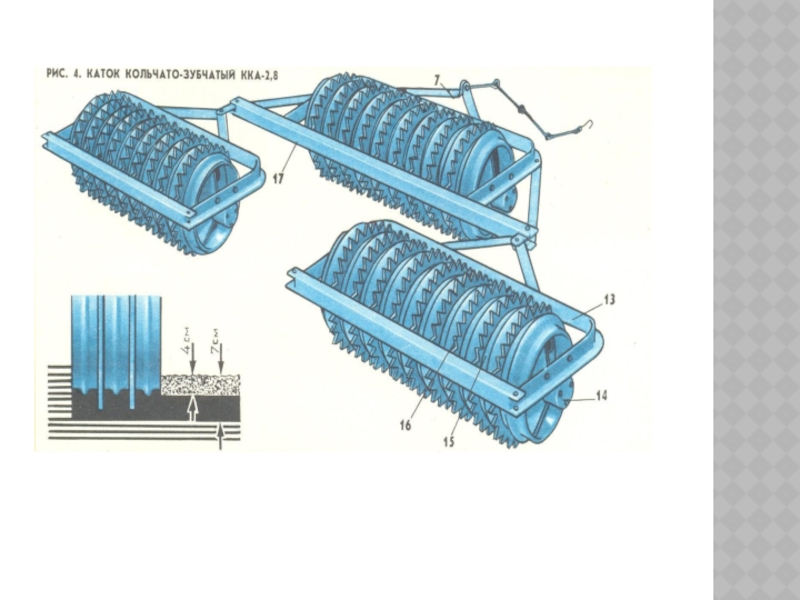 катки для уплотнения почвы, дробления комков и выравнивания поверхности.