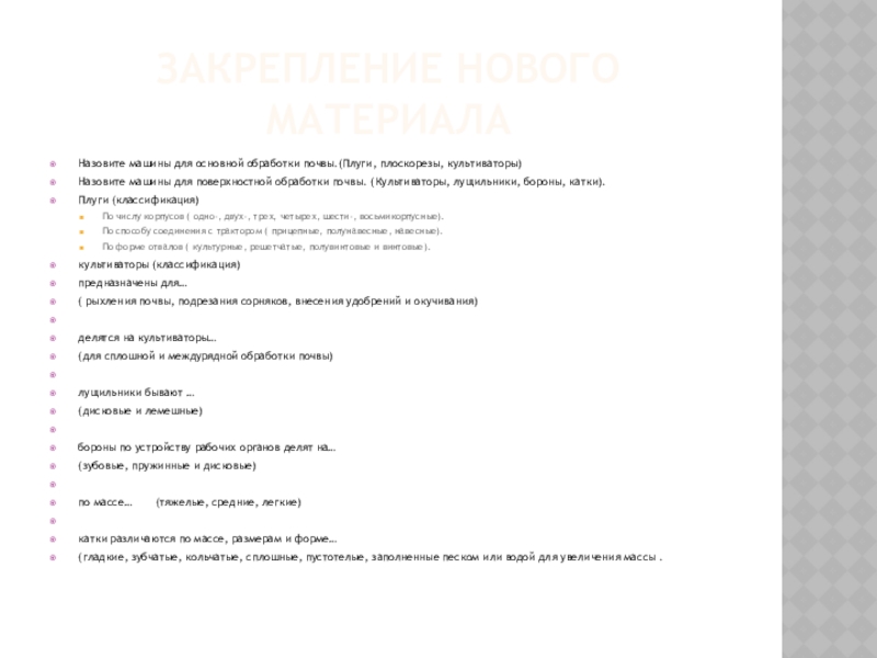 1.Назовите машины для основной обработки почвы.(Плуги, плоскорезы, культиваторы)