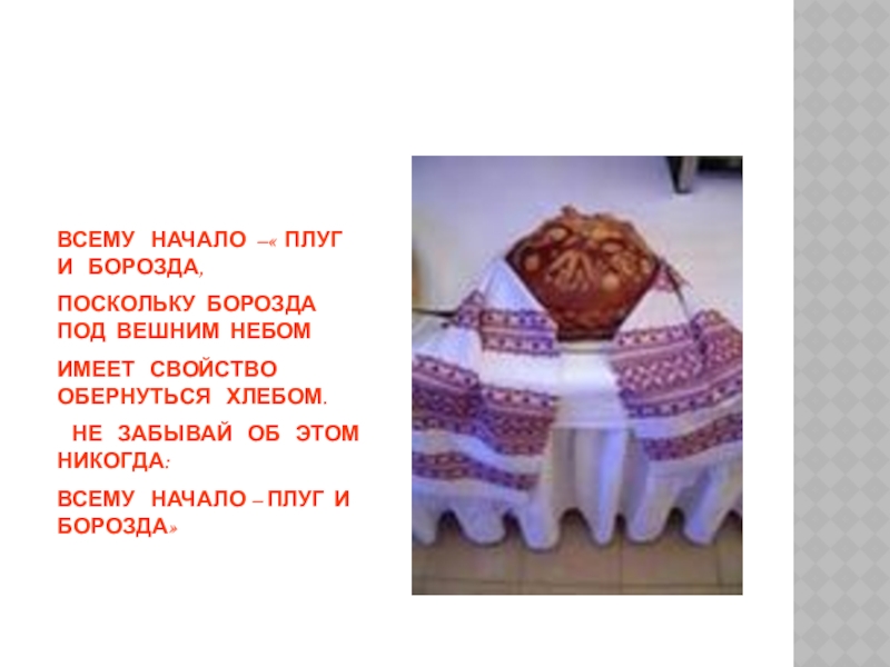 ВСЕМУ НАЧАЛО – ПЛУГ И БОРОЗДА»