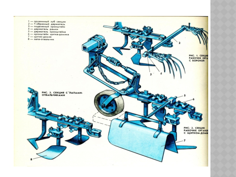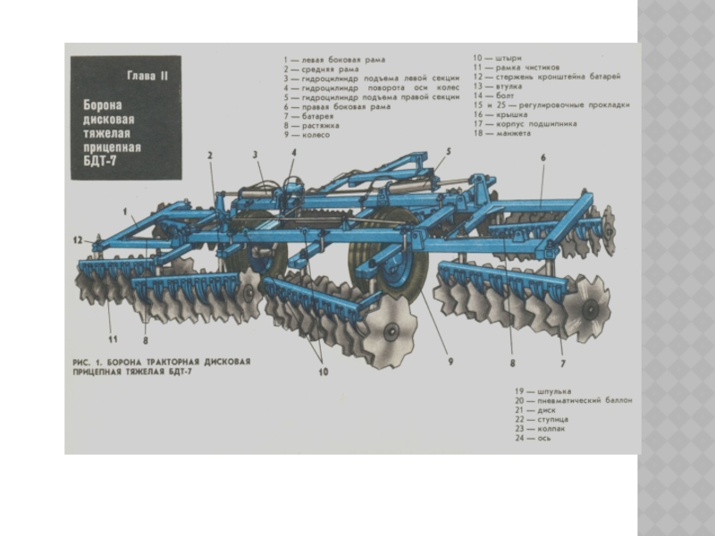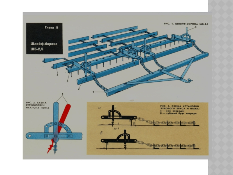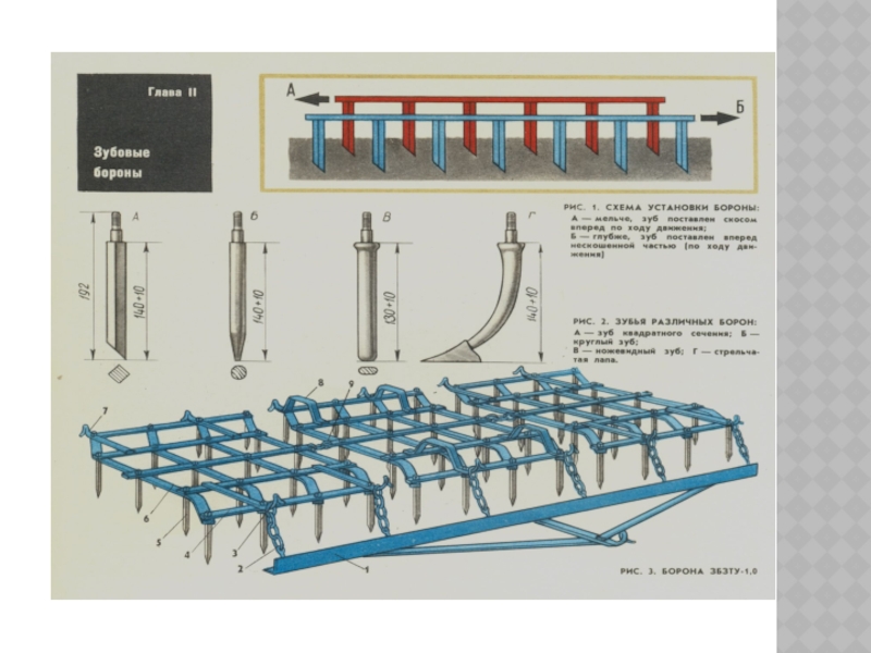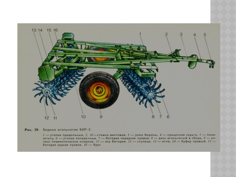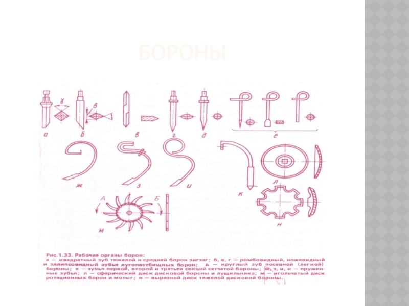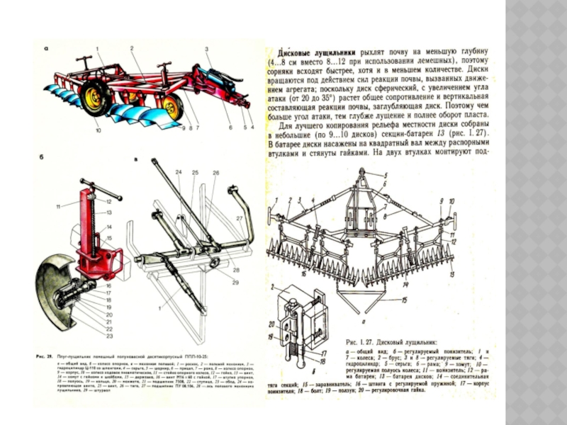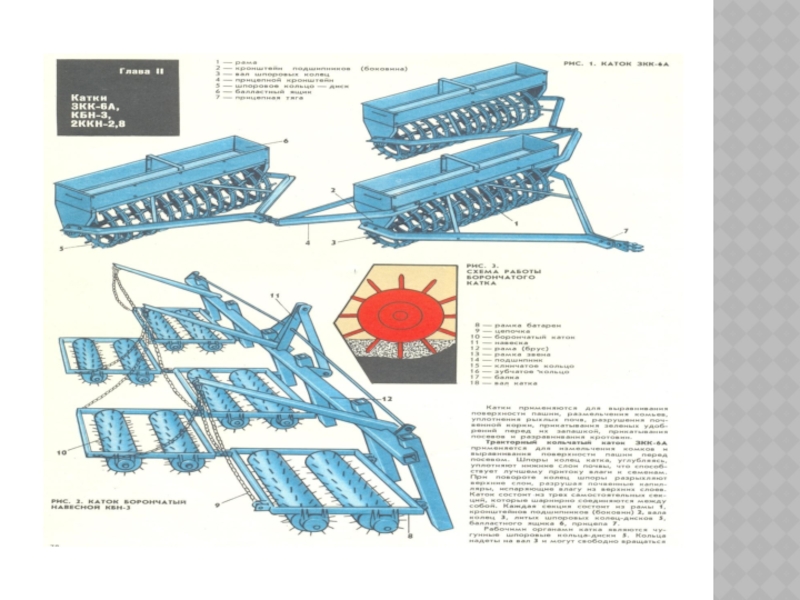 (зубовые, сетчатые, шлейф-бороны, дисковые и др.) и дисковые лущильники для рыхления почвы, борьбы с сорняками и выравнивания поверхности поля;
