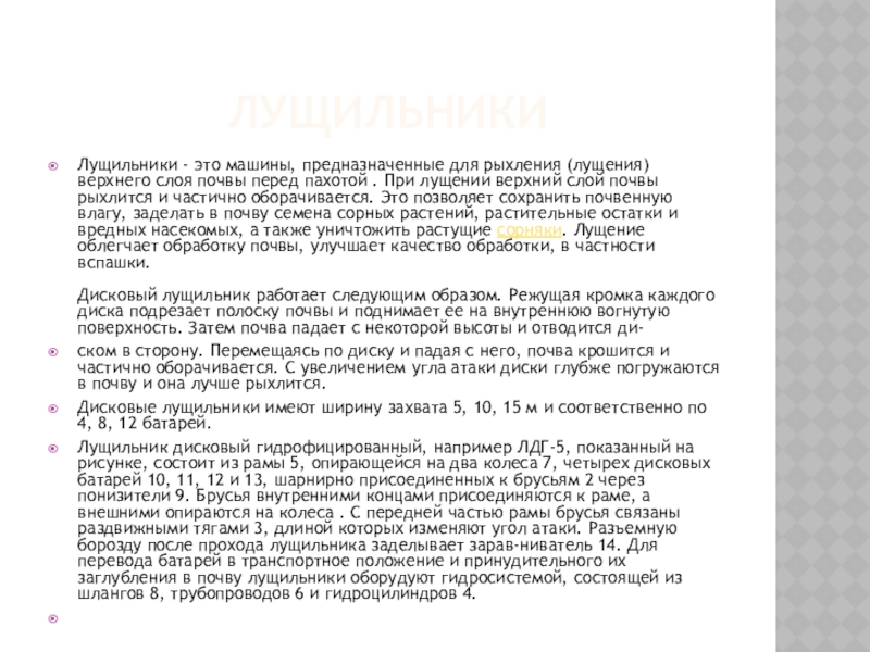 Лущильники - это машины, предназначенные для рыхления (лущения) верхнего слоя почвы