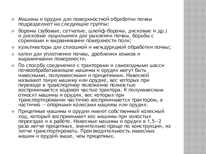 Слайд 7Машины и орудия для поверхностной обработки почвы подразделяют на следующие группы:
