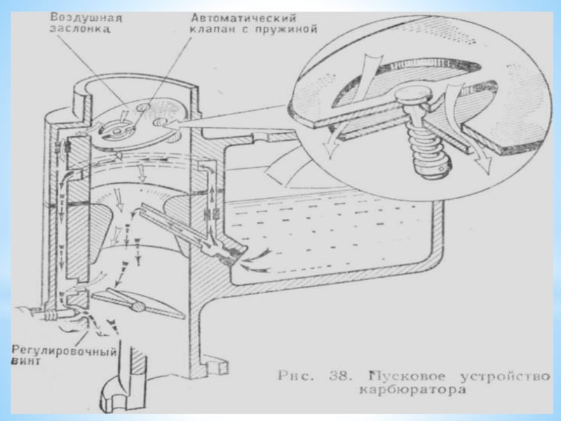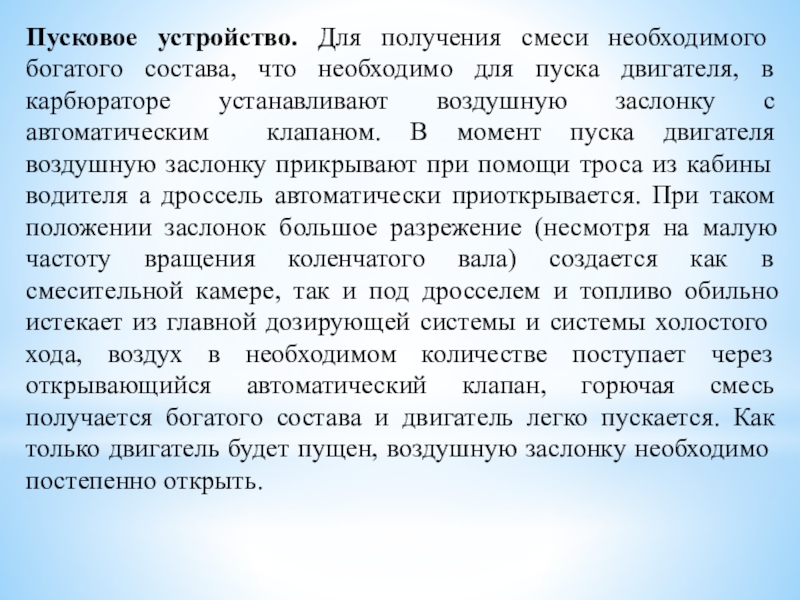 Слайд 27Пусковое устройство. Для получения смеси необходимого богатого состава, что необходимо для