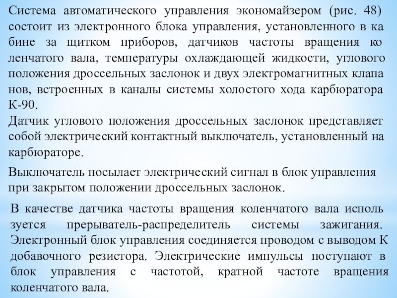 Слайд 50Система автоматического управления экономайзером (рис. 48) состоит из электронного блока управления,