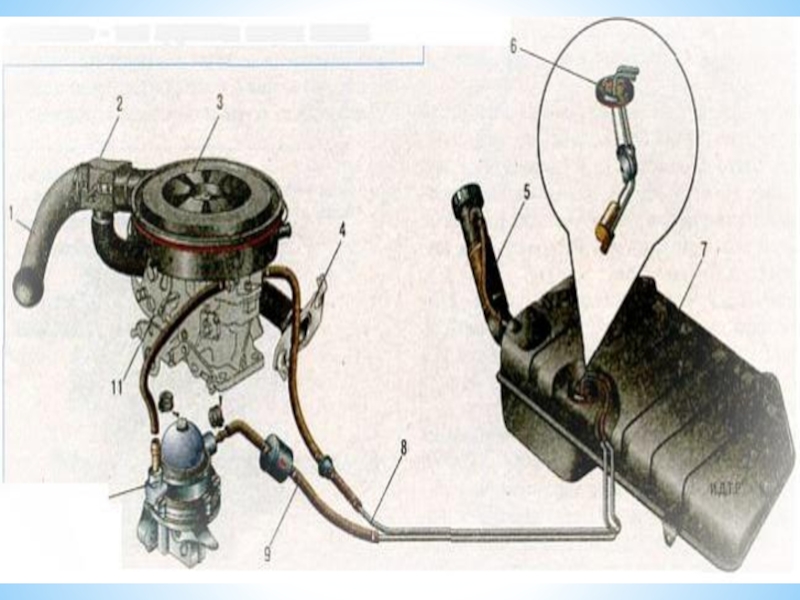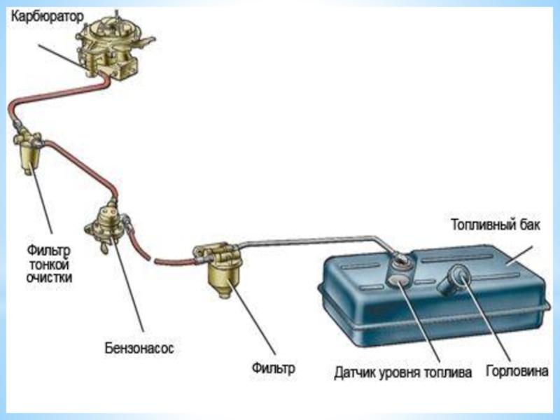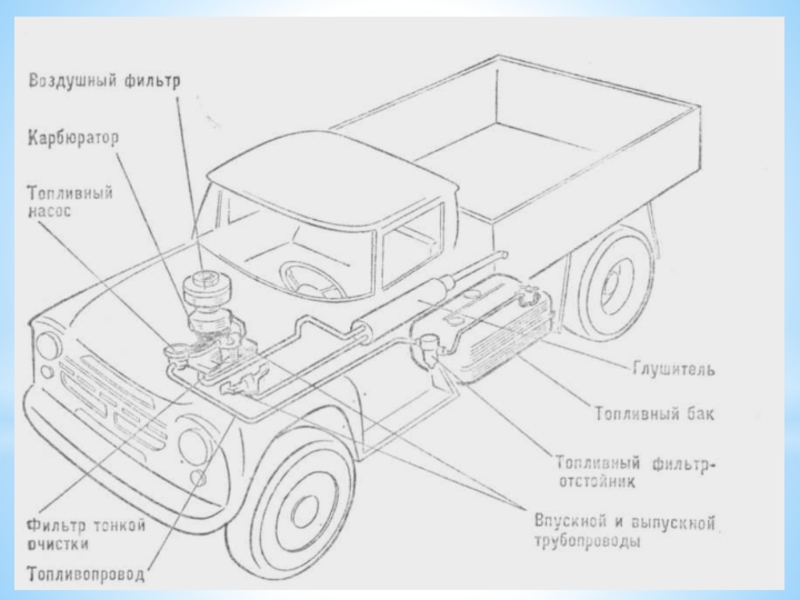 Слайд 1Схема системы питания карбюраторного двигателя (ЗИЛ-130)