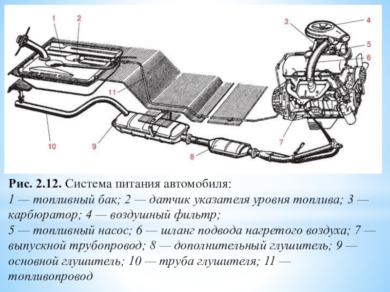 Слайд 3Рис. 2.12. Система питания автомобиля: