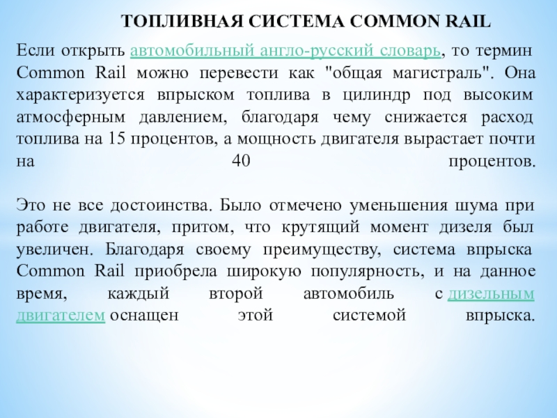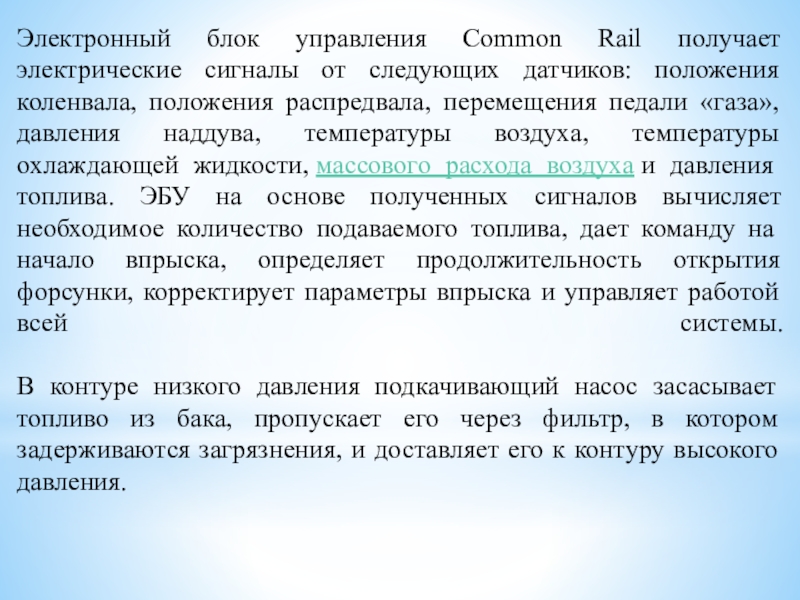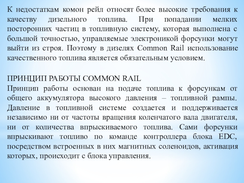 ПРИНЦИП РАБОТЫ COMMON RAIL