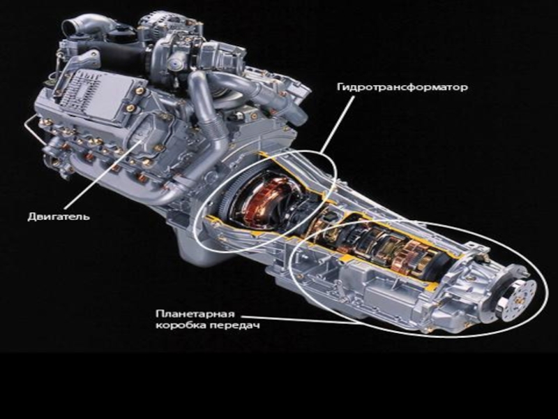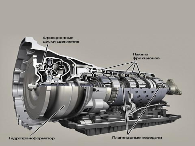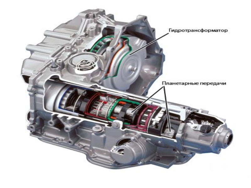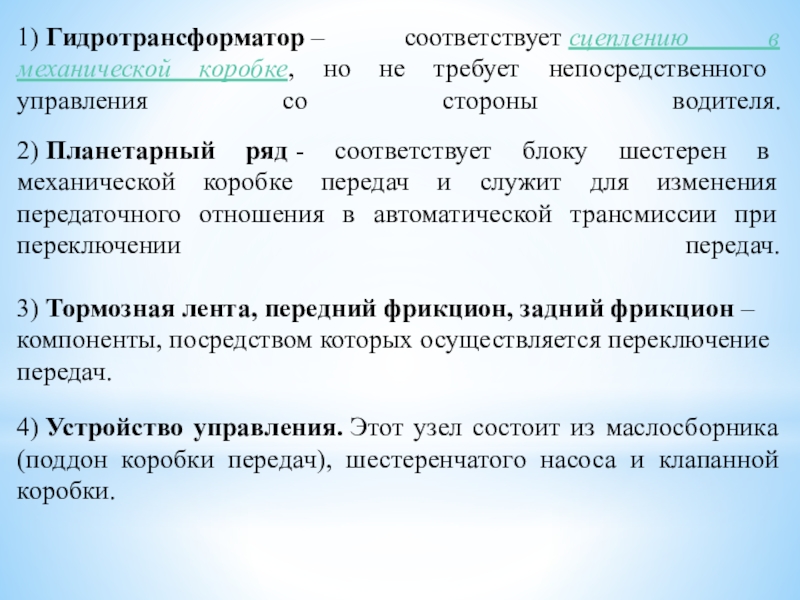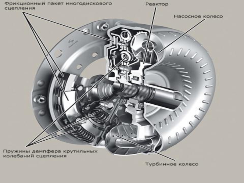 Слайд 51) Гидротрансформатор – соответствует сцеплению в механической коробке, но не требует непосредственного управления со