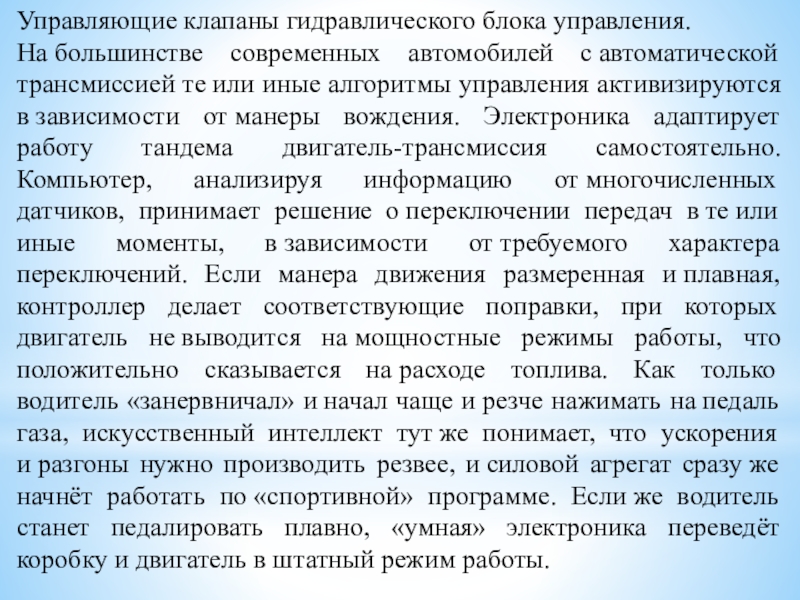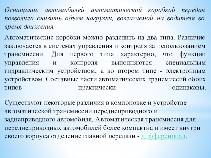 Слайд 2Оснащение автомобилей автоматической коробкой передач позволило снизить объем нагрузки, возлагаемой на