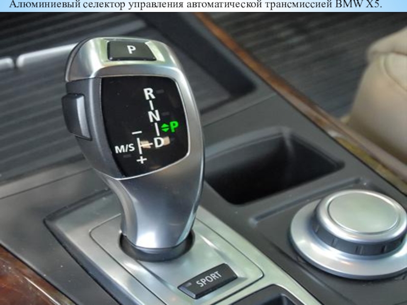 Слайд 18Алюминиевый селектор управления автоматической трансмиссией BMW X5.