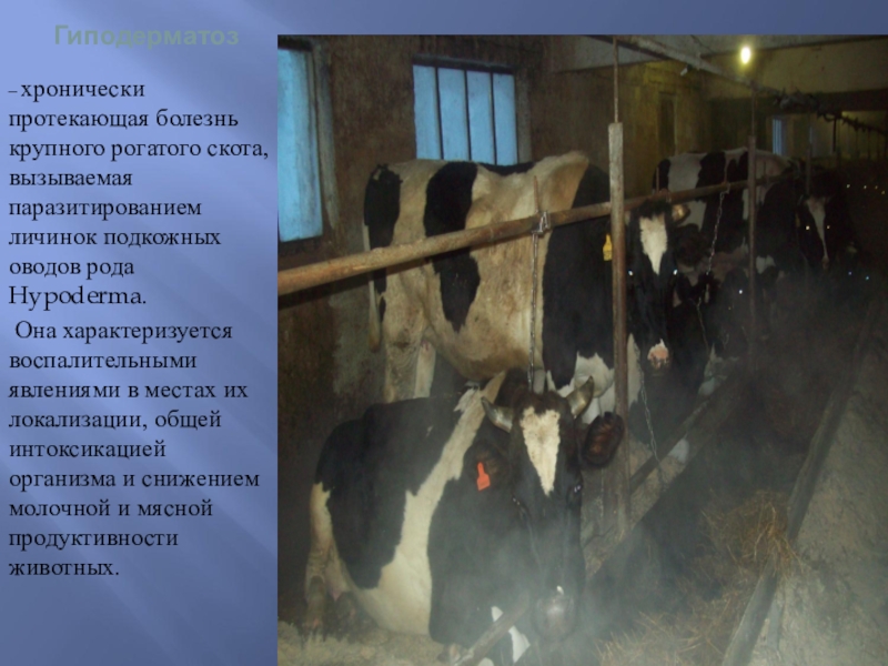 – хронически протекающая болезнь крупного рогатого скота, вызываемая паразитированием личинок подкожных