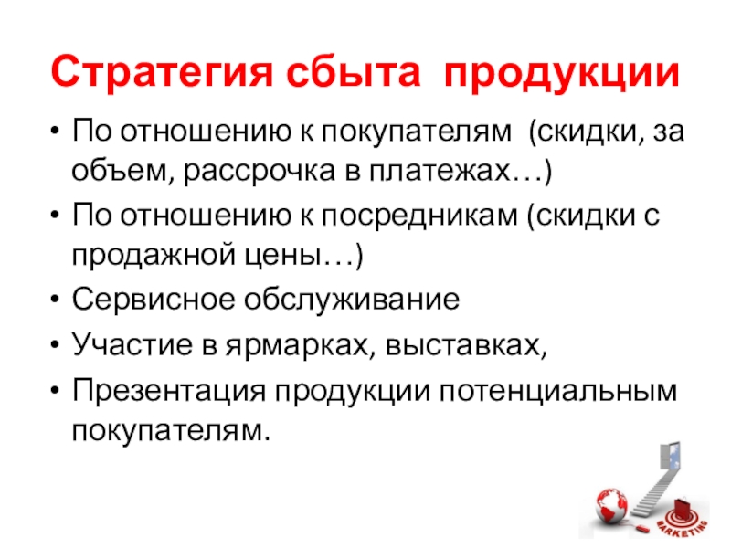 По отношению к покупателям (скидки, за объем, рассрочка в