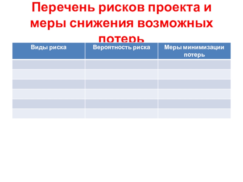 Слайд 23Перечень рисков проекта и меры снижения возможных потерь