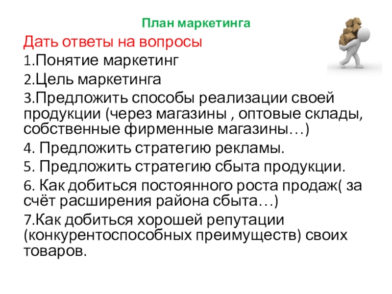 6. Как добиться постоянного роста продаж( за счёт расширения района сбыта…)