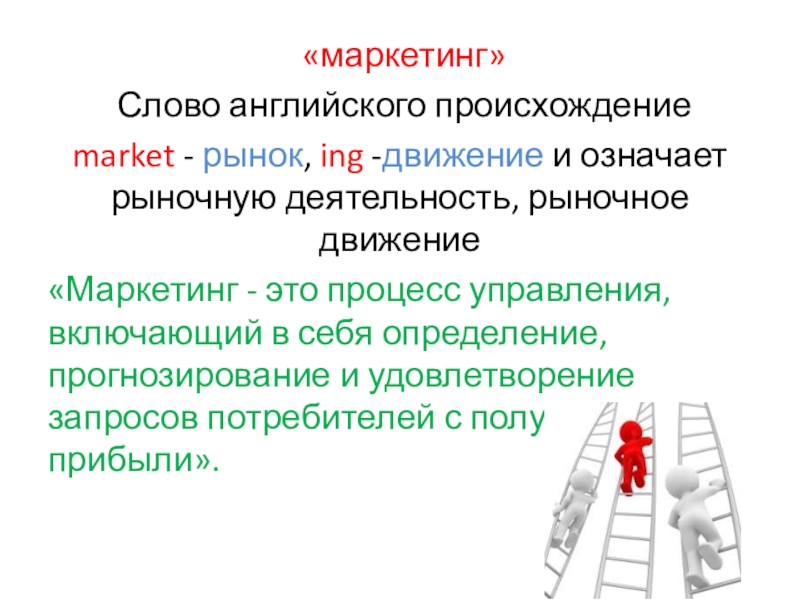 «Маркетинг - это процесс управления, включающий в себя определение, прогнозирование и удовлетворение запросов потребителей с получением прибыли».