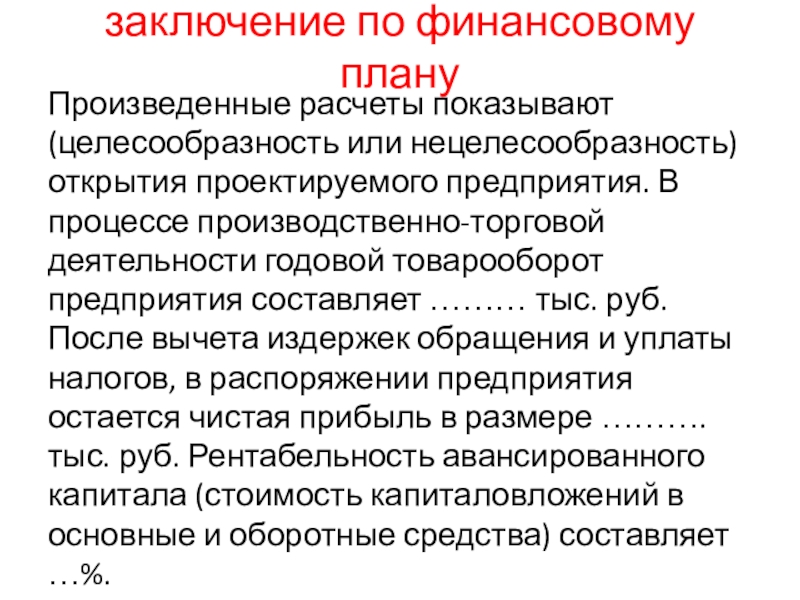 Произведенные расчеты показывают (целесообразность или нецелесообразность) открытия проектируемого