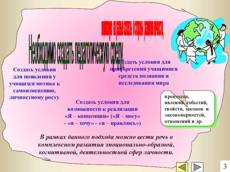 В рамках данного подхода можно вести речь о комплексном развитии эмоционально-образной, когнитивной, деятельностной сфер личности.