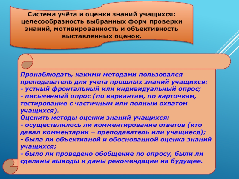 - была ли объективной и обоснованной оценка знаний учащихся;