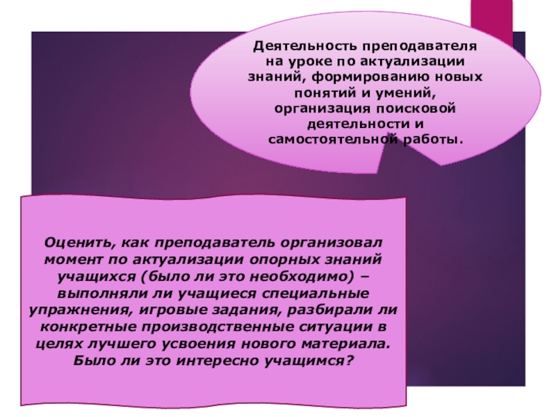 Деятельность преподавателя на уроке по актуализации знаний, формированию новых понятий и умений, организация поисковой деятельности и самостоятельной работы.