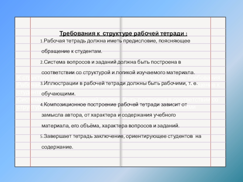 Рабочая тетрадь должна иметь предисловие, поясняющее обращение к студентам.