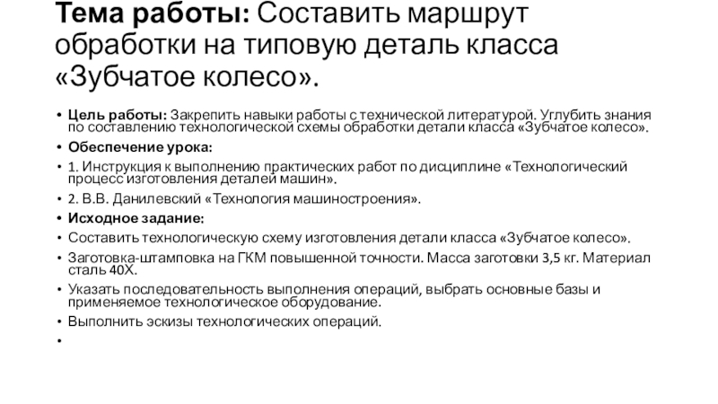 Цель работы: Закрепить навыки работы с технической литературой. Углубить знания по составлению технологической схемы обработки детали класса «Зубчатое колесо».