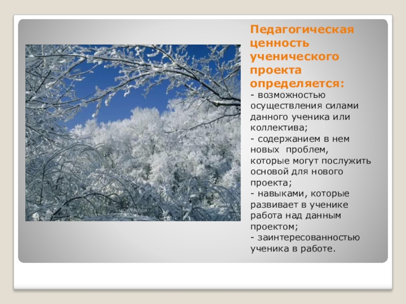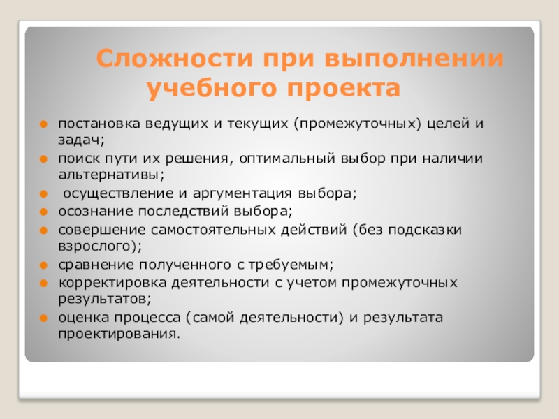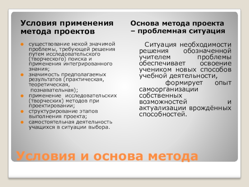 существование некой значимой проблемы, требующей решения путем исследовательского(творческого) поиска и применения интегрированного знания;