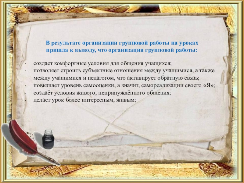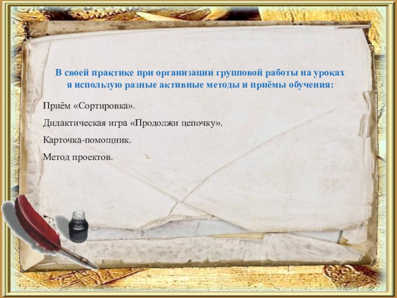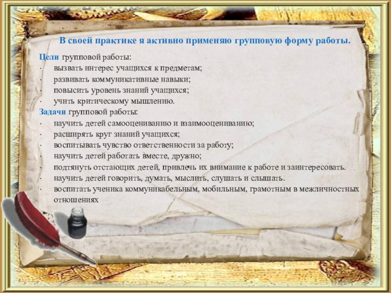 Слайд 9В своей практике я активно применяю групповую форму работы.
