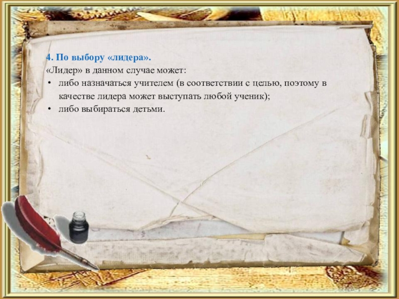соответствии с целью, поэтому в качестве лидера может выступать любой ученик);