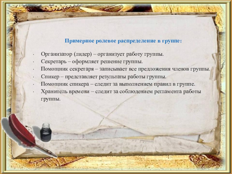 Хранитель времени – следит за соблюдением регламента работы группы.