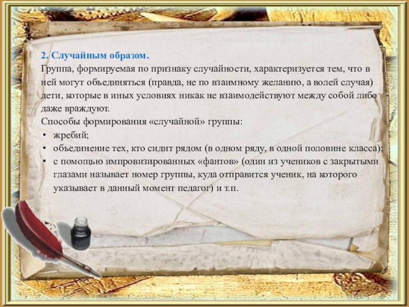 Группа, формируемая по признаку случайности, характеризуется тем, что в