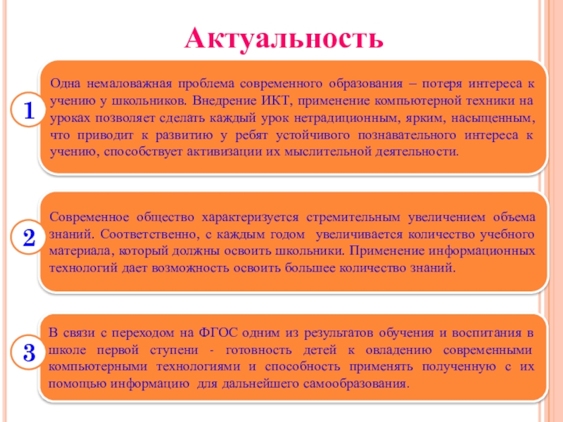 Современное общество характеризуется стремительным увеличением объема знаний. Соответственно, с каждым годом увеличивается количество учебного материала, который должны освоить школьники. Применение информационных технологий дает возможность освоить большее количество знаний.