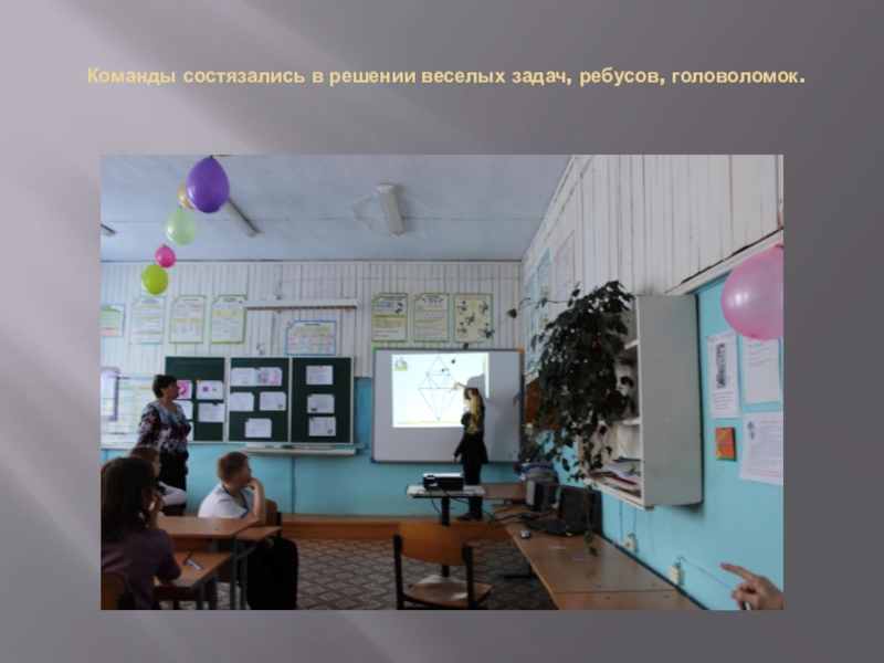 Слайд 30Команды состязались в решении веселых задач, ребусов, головоломок.