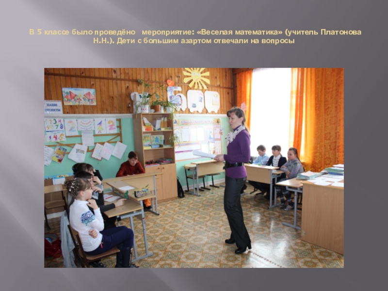 Слайд 26 В 5 классе было проведёно мероприятие: «Веселая математика» (учитель Платонова Н.Н.).