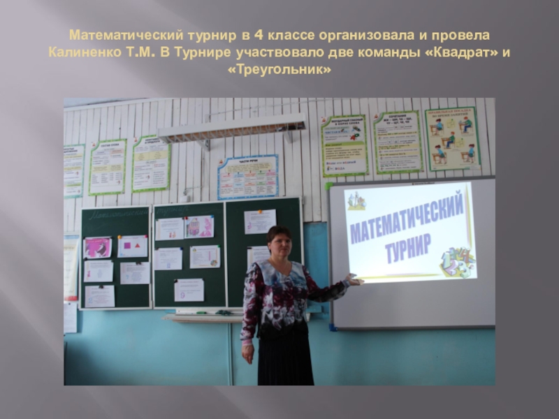Слайд 29Математический турнир в 4 классе организовала и провела Калиненко Т.М. В