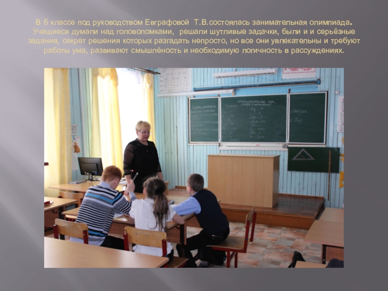 Слайд 21В 6 классе под руководством Евграфовой Т.В.состоялась занимательная олимпиада. Учащиеся думали