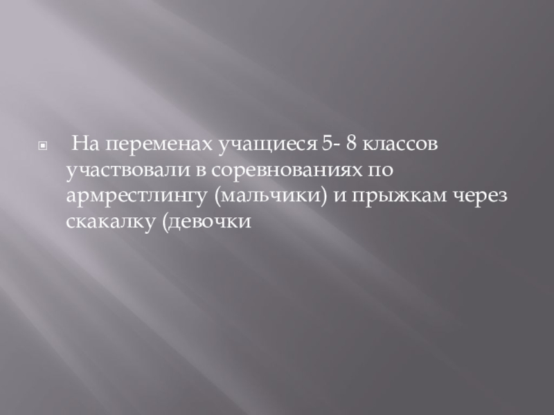 На переменах учащиеся 5- 8 классов участвовали в соревнованиях по