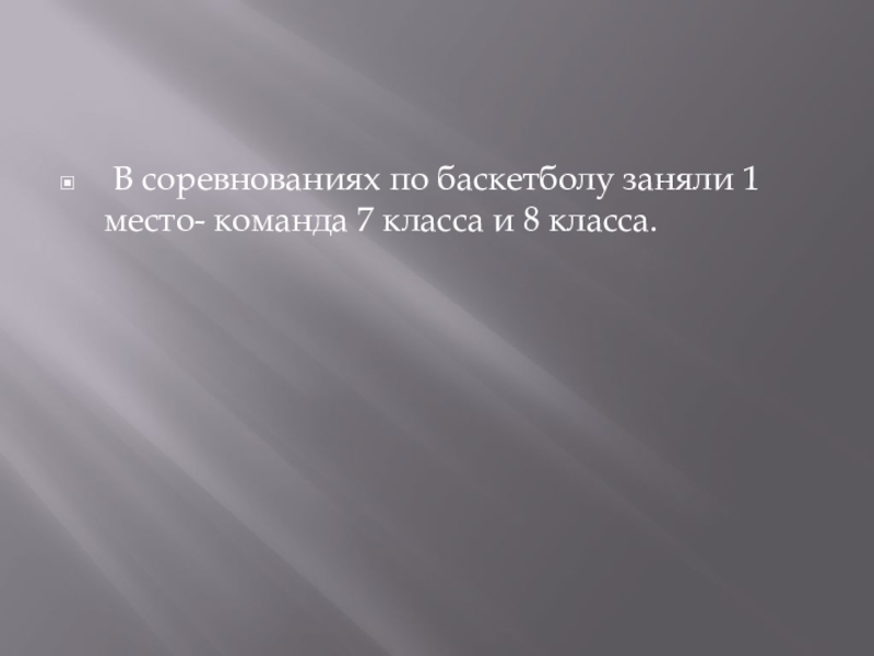 Слайд 13 В соревнованиях по баскетболу заняли 1 место- команда 7 класса