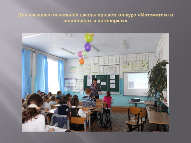 Слайд 35Для учащихся начальной школы прошёл конкурс «Математика в пословицах и поговорках»
