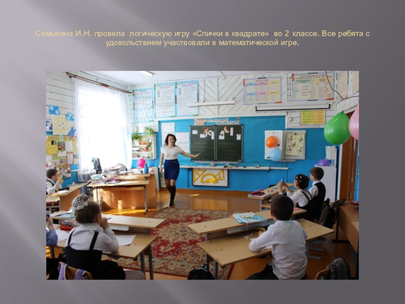 Слайд 32Семыкина И.Н. провела логическую игру «Спички в квадрате» во 2 классе.