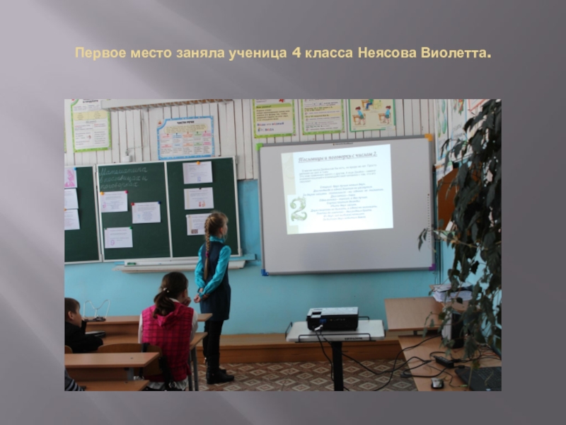 Слайд 37Первое место заняла ученица 4 класса Неясова Виолетта.