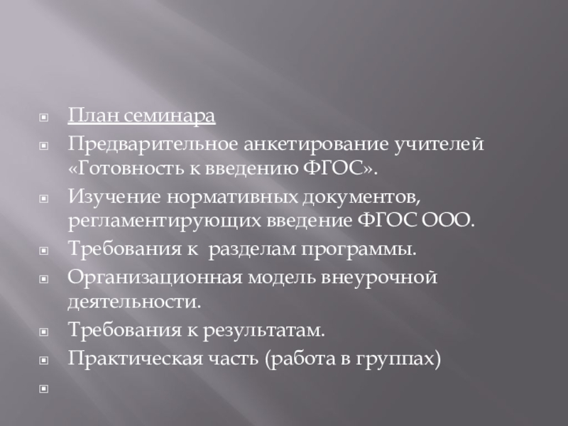 Слайд 59 Семинар «ФГОС второго поколения. Основные документы, регламентирующие введение ФГОС ООО».