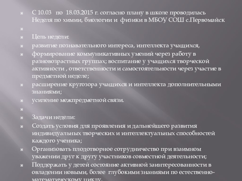 Слайд 38С 10.03 по 18.03.2015 г. согласно плану в школе проводилась