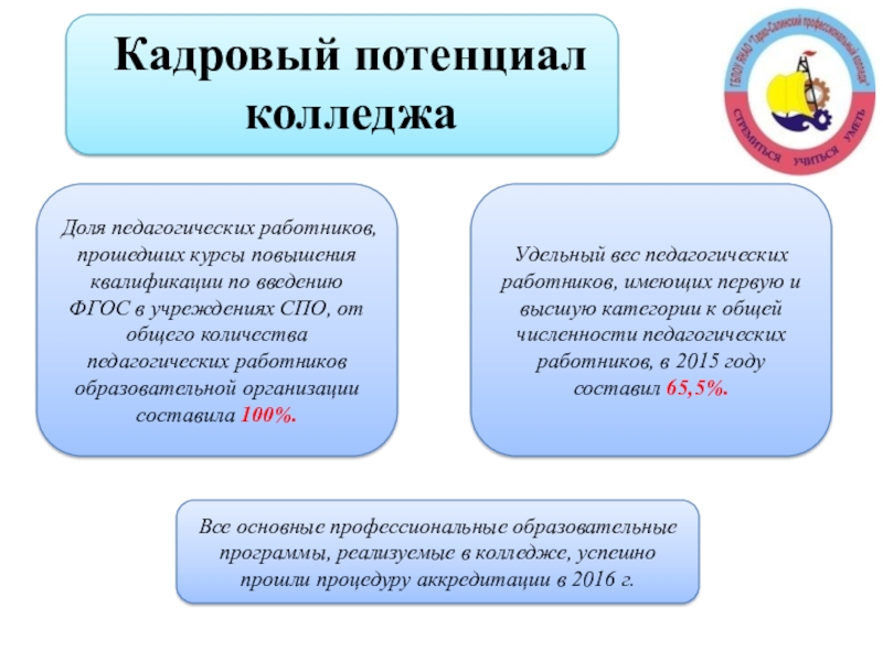 Все основные профессиональные образовательные программы, реализуемые в колледже, успешно прошли процедуру аккредитации в 2016 г.