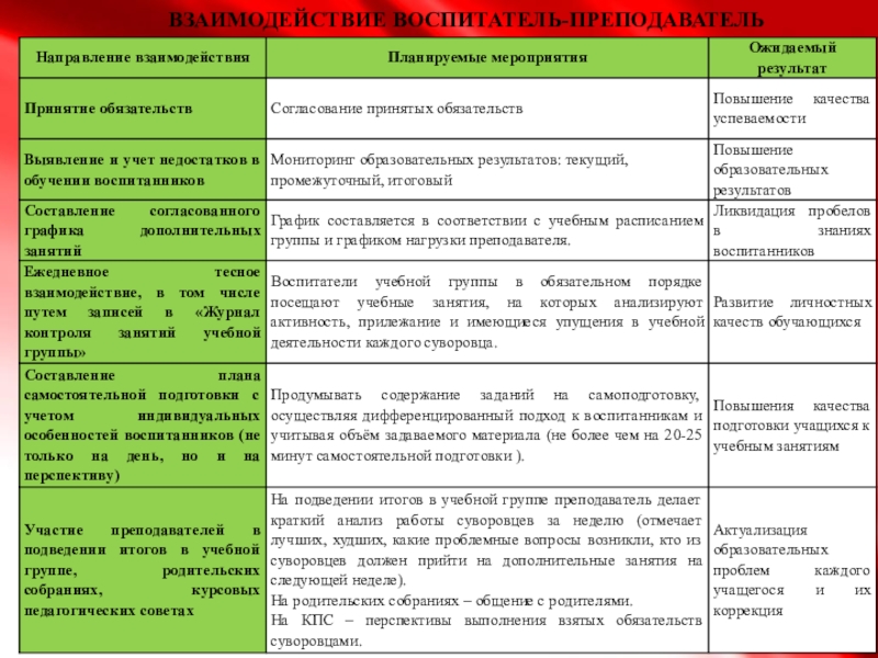 Слайд 3ВЗАИМОДЕЙСТВИЕ ВОСПИТАТЕЛЬ-ПРЕПОДАВАТЕЛЬ