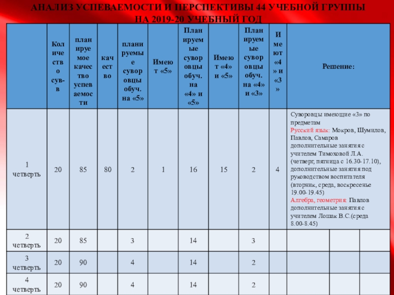 Слайд 6АНАЛИЗ УСПЕВАЕМОСТИ И ПЕРСПЕКТИВЫ 44 УЧЕБНОЙ ГРУППЫ