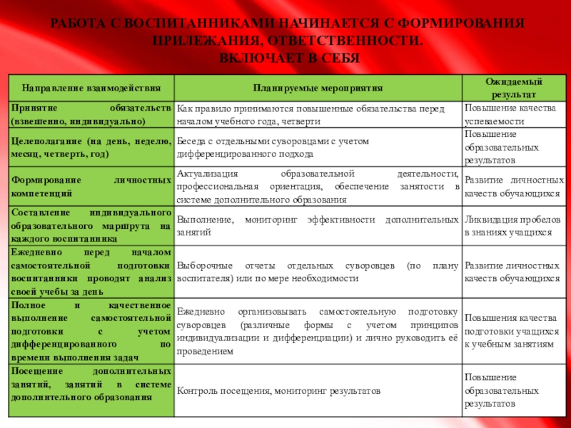 Слайд 5РАБОТА С ВОСПИТАННИКАМИ НАЧИНАЕТСЯ С ФОРМИРОВАНИЯ ПРИЛЕЖАНИЯ, ОТВЕТСТВЕННОСТИ.