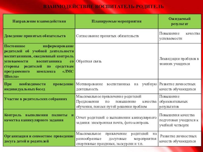 Слайд 4ВЗАИМОДЕЙСТВИЕ ВОСПИТАТЕЛЬ-РОДИТЕЛЬ