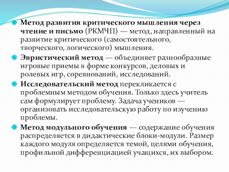 Слайд 7Метод развития критического мышления через чтение и письмо (РКМЧП) — метод,