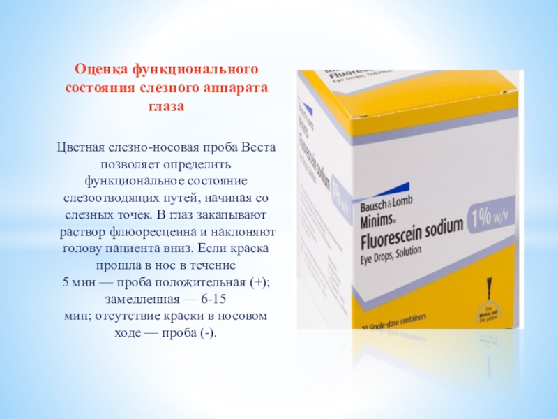 Слайд 36Оценка функционального состояния слезного аппарата глаза