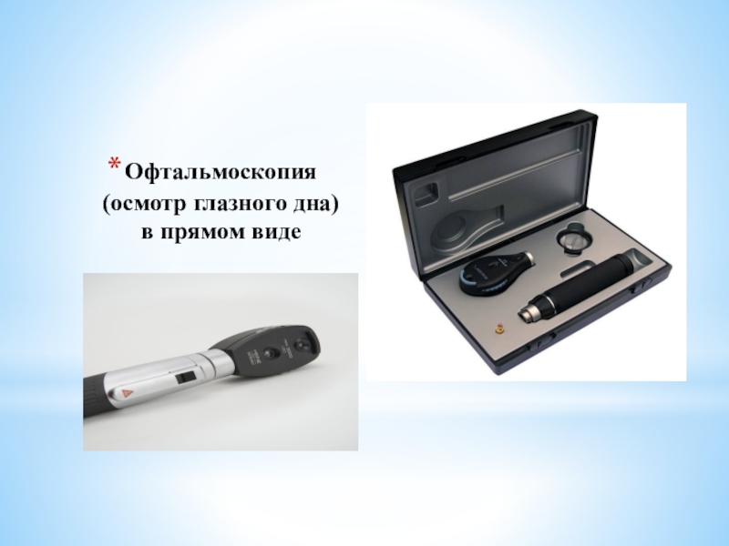 Слайд 27Офтальмоскопия (осмотр глазного дна)